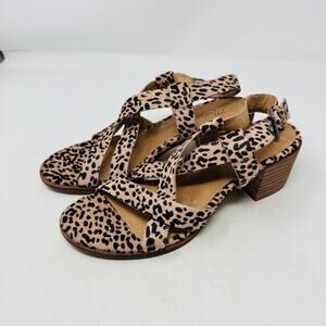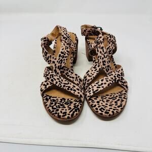 Madewell Alyssa Calf Hair Cheetah Print Block Heel Sandal Open Toe Size 7