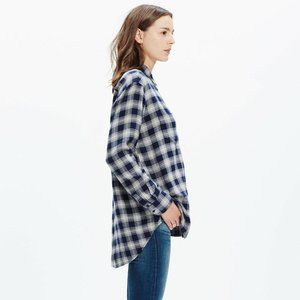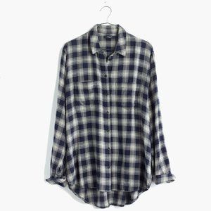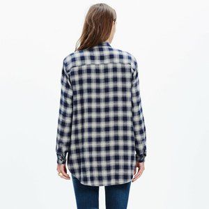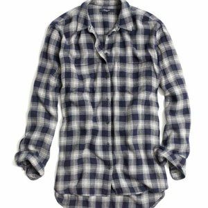 Madewell Andover Blue & Gray Flannel Oversized Boyshirt Plaid Button Up Top XXS