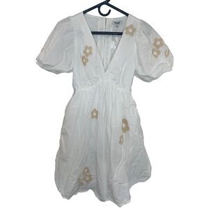 Madewell Annamarie Mini Girly Gauzy Poofy Cotton Dress White Floral NWT size 00