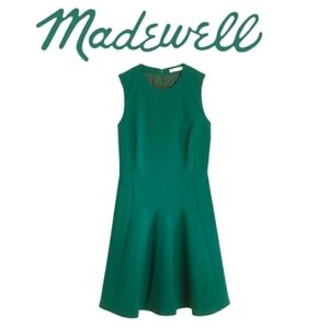 Madewell Anywhere Skater Dress Emerald Fit & Flare Sleeveless BackZip Lined Sz 0