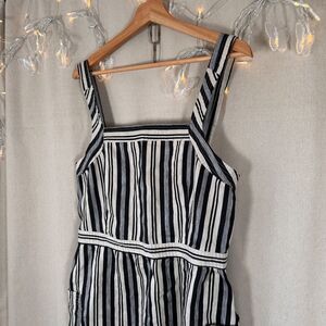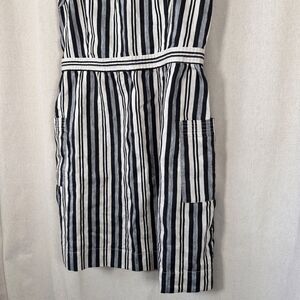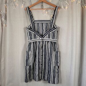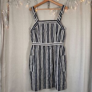 Madewell Apron Dress in Evelyn Stripe Linen Cotton Blend Blue White Size 8 NWT