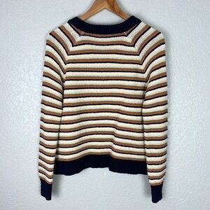 Tags: preworn, Madewell sweater, short, rib stitch, AC786, cozy, comfy, chunky, trendy, striped, stripes, brown, tan, pink, navy blue, cream, classic, v neckline, comfortable, fall, autumn, casual cute, small, Nordstrom, long sleeve, cuffs, hem, retro style, vintage vibes, knitwear, transitional piece, warm tones, cropped sweater, 70s inspired, elevated basics, preppy, laid-back style, layering piece, relaxed chic, knit pullover, textured sweater, minimalist closet, casual luxe, cotton knit, normcore, seasonal transition, timeless staple, versatile, fashion essential, arden sweater
