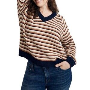 Madewell Arden Striped Women Sweater Knit Chunky V-Neck Pullover Large Fall