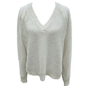 Madewell Arden V-Neck Crop Pullover Sweater Bright Ivory Cream Large