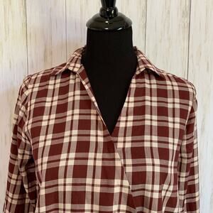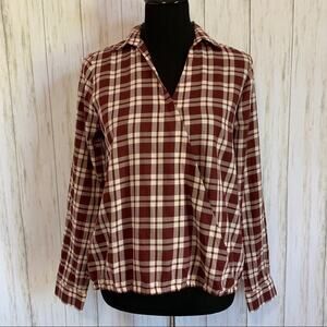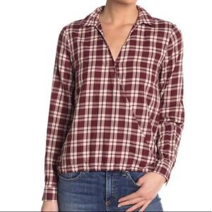 Madewell Arion burgundy cream plaid front wrap long sleeve shirt size Small NWT