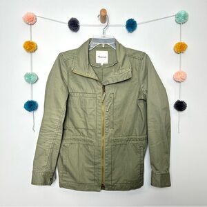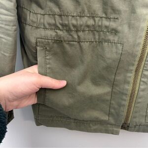 Green military field jacket. Zip up front and multiple pockets. Size medium. Great condition!