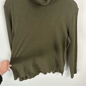 Madewell Olive Green Whisper Cotton Turtleneck Long Sleeve Tee Size Medium Minimalist Casual Winter Snow
