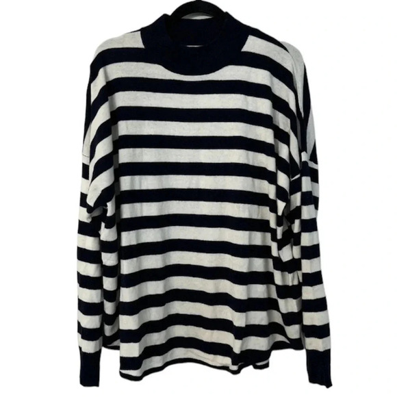 Madewell Ashbury Mock Neck Wool Blend Striped Dark Indigo Sweater NWT