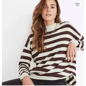 Madewell Ashbury Mockneck Kelsey Striped Oversized Sweater XL Extra Large Merino Wool Alpaca Blend