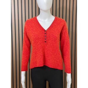 Madewell Asherton Women's S Red Sweater Wool Alpaca Henley Tunic Waffle Knit