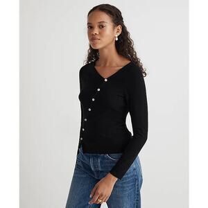 Madewell Asymmetrical Black Button Front Cardigan Sweater Top Size Small