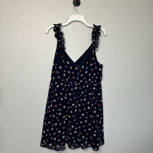 Madewell Babydoll Dress 10 Floral Navy Mini Ruffle Surplice Sleeveless Coquette