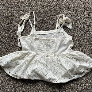Madewell Babydoll Top Womens Small White Linen Tie Straps Lace Detailing