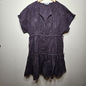 Madewell Babydolled Tiered Cat Tail Print Mini Dress with Ties down the sides.Very dark purple.