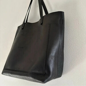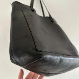 Good pre owned condition. Slight wear in corners. No major flaws! Black leather. Perfect size tote!
