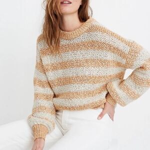 Madewell Baez Orange/Cream Cotton/Wool/Alpaca Cardigan Sweater Sz M