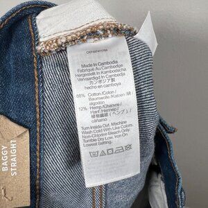 rigid, high riseThe cut: designed to go with a tiny tee, these baggy jeans are fitted through the high waist with slouchy straight legs. The fabric: blended with light and airy hemp, this 100 percent cotton denim has old-school character and zero stretch. Baggy, Slouchy, Loose