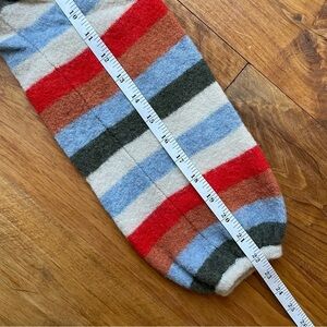 Madewell striped pullover sweater. Darling striped sweater with balloon sleeves and dropped shoulders. Nylon, wool, alpaca, and elastane blend. Very soft and cozy. Side slits on the hem. Gently preowned with a small spot in the yarn as shown by the pencil tip. See photos for details and measurements.
