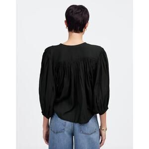 Madewell Balloon Sleeve Top Blouse Black Lightweight Cotton Blend Boho XXL NWT