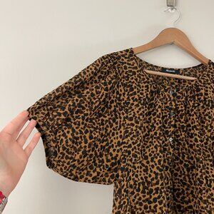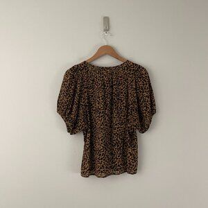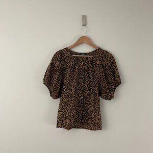 Madewell Balloon-Sleeve Button-Up Top in Painted Leopard Size Small