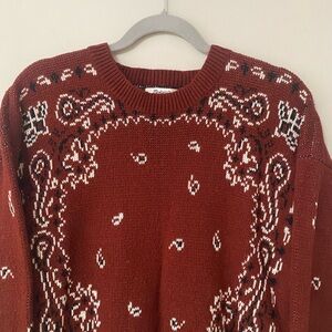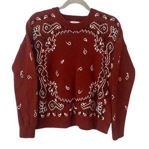 A bandana style paisley printed pullover adds a western feel to this slightly cropped pullover