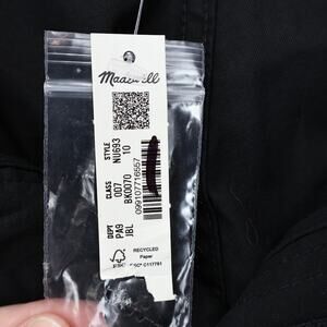 Madewell Barrel Leg Utility Pant Garment Dyed Twill Black Size 10 NWT