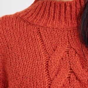 A fuzzy mockneck take on the classic cableknit sweater in the prettiest colors. Such a dream!