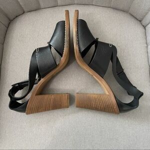 Heel is approx 3.5” tall. Very comfy to wear! Straps in great condition
