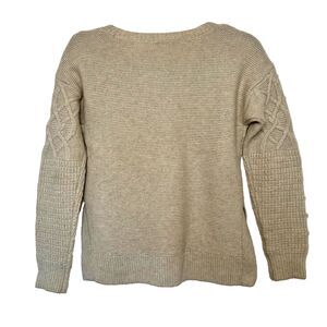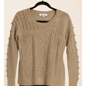 Madewell Beige Merino Wool Cable Knit Crew Neck Long Sleeve Pom Pom Pullover Sweater Size XS