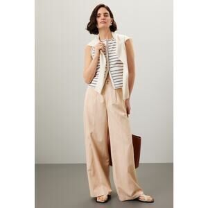 The MADEWELL Beige Tan Wide-Leg Pants in Size 14 offer a laid-back yet polished look with their relaxed fit and easy drape. Crafted from soft, breathable fabric, they feature a button-front closure that adds a touch of structure to the effortless silhouette. The wide-leg design provides comfort and movement, making them perfect for all-day wear. Subtle pleating at the waist enhances the relaxed style while keeping it refined. The neutral beige tan hue ensures versatile pairing with everything from casual tees to tailored blouses. A go-to piece for chic, everyday dressing.