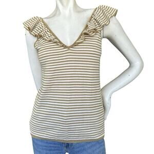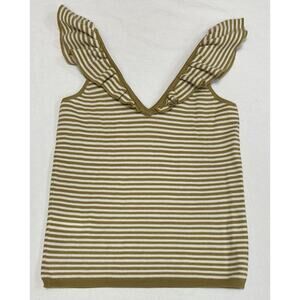 Madewell Bellhaven Stripe Ruffle Knit Sweater Tank XXS Merino Wool Blend Tan NWT