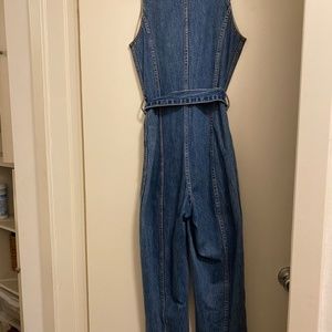 Super cute and flattering belted denim jumpsuit from Madewell. No flaws, only worn a handful of times. Size XS, but fits up to a small.
