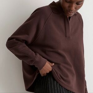 Madewell Betterterry Polo Sweatshirt in Chocolate Raisin size XXS NO164