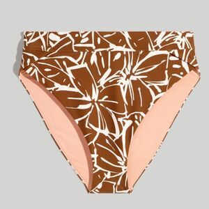 Madewell Women's High-Rise Crossover Bikini Bottom in Abstract Flora in Sepia Brown Size XXS.