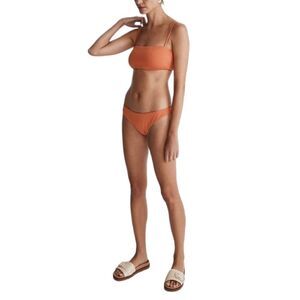 Madewell Bikini Set Convertible Ribbed Lined Bandeau Cheeky Sz S Classic Coral NWT