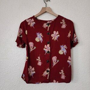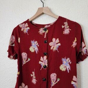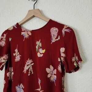 Madewell Bird of Paradise Button Back Blouse Deep Crimson Size XS