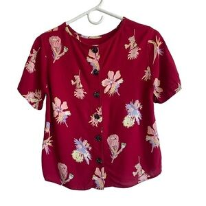 Darling, lightweight top from Madewell in a fun floral pattern. Slightly cropped fit with cute buttons down the back. Size XS. In excellent preowned condition; no visible flaws.