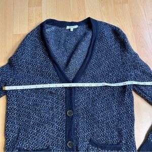 Madewell Birds Eye Maysfield Cardigan Sweater in heather atlantic. Navy blue and white, V neck with 3 large chunky buttons. This cardigan is SO SOFT.