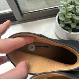 NEOT never worn. Black ankle booties featuring a sleek black leather design. Smooth leather and chunky round block heels. Pull on style. Size 7. Minor flaw shown on the left boot. Good condition!