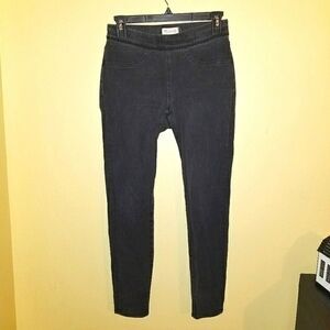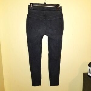Item: women's stretchy skinny jeans, distressed or faded black color, pull on style with an elastic waist, style is called the Anywhere Jean, size 27, originally $98