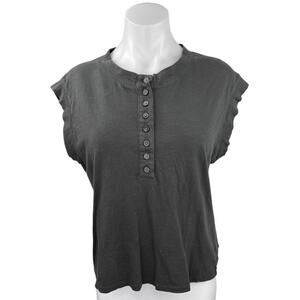 Madewell Black Button Front Henley Sleeveless Crew Neck Casual Top Size S