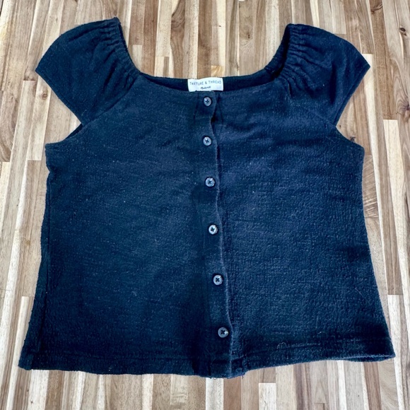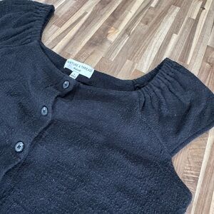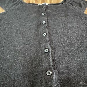 Stylish black button-down shirt with short sleeves. Ideal for casual wear.
