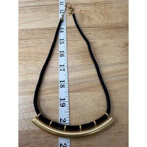 Madewell Black Cord Necklace With Gold-Tone Curved Bar Pendant Adjustable Length