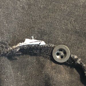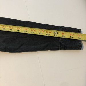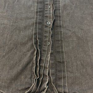 This is a cute Madewell black denim faded long sleeve button up top. It has a button closure and front ruffle. The care tags has been removed but it looks to be a cotton or cotton blend. Size small but please also see measurements. Thanks!