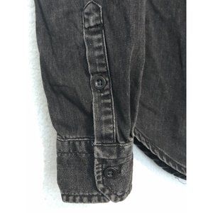 Madewell Black Denim Front Ruffle Button Up Shirt Top Women Size Small