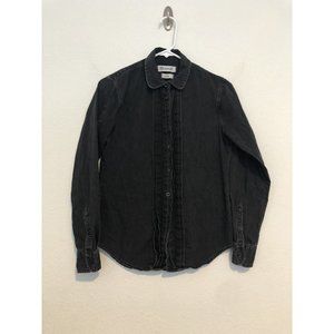 Madewell Black Denim Front Ruffle Button Up Shirt Top Women Size Small.