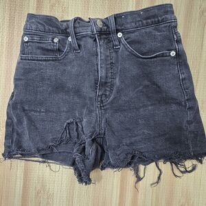 Madewell Black Denim High Rise Distressed Jean Shorts Size 25