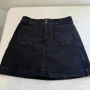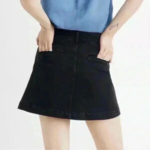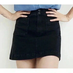 Madewell Black Denim Skirt Rigid A-Line distressed bottom size 2