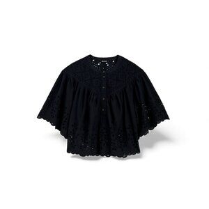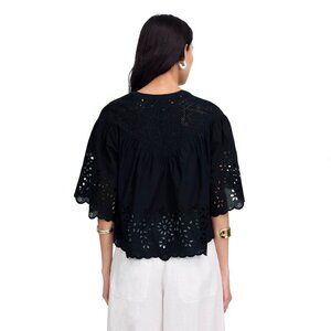 Madewell Black Embroidered Shirred Henley Top Size Small