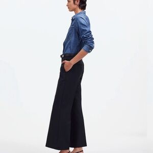 These Madewell pants showcase a classic boot cut and flare silhouette in a rich black hue. Made from a premium fabric, they provide a polished appearance with a gentle flare below the knee, ensuring versatility and style. Style with heels or flats.